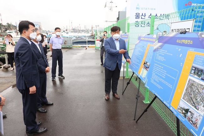 조주현 중소벤처기업부 차관이 17일 울산광역시 장생포항을 방문해 수소선박충전소 현황을 점검하고 있다.