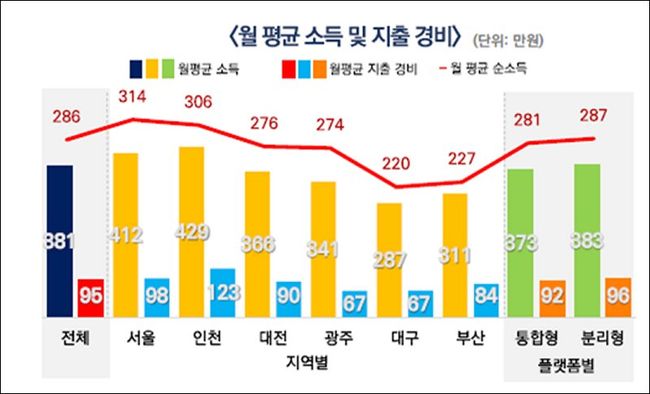 배달 운송업 종사자는 월 평균 약 25.3일을 일하며 약 381만원을 벌면서, 약 95만원을 보험료, 렌탈료 등으로 지출하는 것으로 조사되었다.