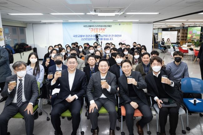국토교통부와 청년재단은 국토교통 신산업 활성화를 위한 새싹기업 소통 릴레이의 일곱 번째 만남으로 28일 오전 7시 30분 광화문 청년재단 사무실에서 “제7회 국토교통부✕스타트업✕청년재단 커피챗” 행사를 개최했다.