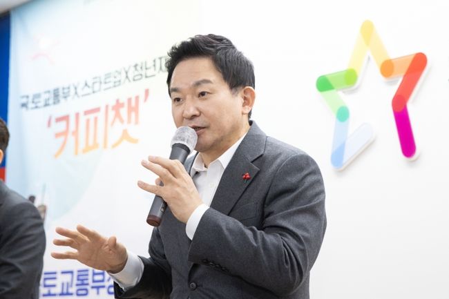 원희룡 장관이 28일 오전 7시 30분 광화문 청년재단 사무실에서 열린 “제7회 국토교통부✕스타트업✕청년재단 커피챗” 행사에 참석하여 발언하고 있다. (국토교통부 제공)
