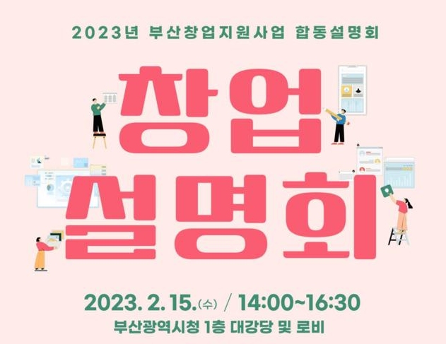 부산시는 오는 15일 오후 2시, 시청 1층 대강당에서 10개 창업지원기관과 함께 최초로 온·오프라인 동시 진행하는 `2023년도 부산 창업지원사업 합동설명회`를 개최한다고 밝혔다.
