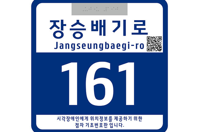 ‘점자 기초번호판`은 해당 지점의 위치를 안내하는 도로명주소 안내표지판에 점자를 표기한 것으로, 교통 약자에게 정확한 위치 정보를 제공하고 안전한 보행 환경을 조성하고자 시행하게 됐다.