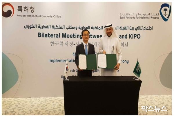 박원주 특허청장과 알 스와일렘 사우디 지식재산청장은 지난 3월 31일 사우디 리야드 리츠칼튼호텔에서 청장회담을 갖고, 사우디 지식재산 생태계 조성사업의 성공적인 추진을 위한 15명의 한국 지식재산 전문가 파견, 사우디 특허심사관의 방한 훈련프로그램 운영 등 약 320만불 규모의 1차 협력사업에 대한 약정을 체결했다.