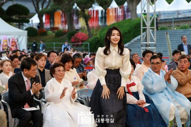 김 여사는 2주 전 ‘한국방문의해위원회 명예위원장’으로 추대된 후, 첫 지역 일정으로 무형문화재 전승 및 저변 확대와 지역 관광 활성화를 도모할 수 있는 충남 서천군의 대표 지역축제인 한산모시문화제를 선택했다.