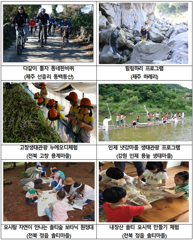 환경부가 인증한 생태 관광 프로그램들. (사진=환경부 제공)