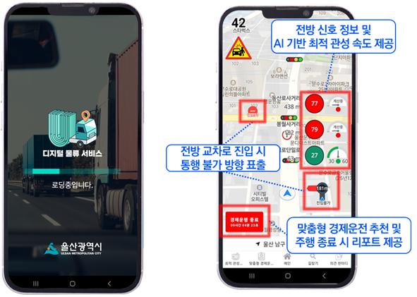 디지털 물류서비스 실증 앱을 사용하는 울산 시내 화물차 운전기사는 "화물차 종류를 고려한 관성 주행속도 서비스가 신기하다. 앱에서 신호 정보를 실시간으로 볼 수 있어 좋았고 앱의 관성주행 속도(30∼50㎞)에 맞춰 운행을 해보니 연료 절감 효과가 있어 큰 도움이 됐다"라며 "많은 신호가 정확히 운영된다면 정말 유용할 것 같고, 앞으로의 다양한 관련 서비스의 업데이트도 기대된다"라고 말했다.