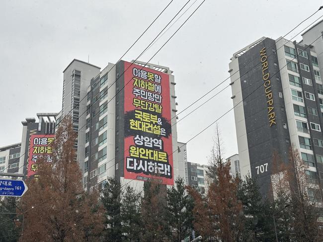 의견서에 따르면 국토교통부와 ㈜현대건설은 대장홍대선 광역철도 실시 설계 시 월드컵파크7단지 아파트 주민들에게 사전 고지와 협의 없이 아파트 용지 일부를 침범하는 노선을 포함했다.