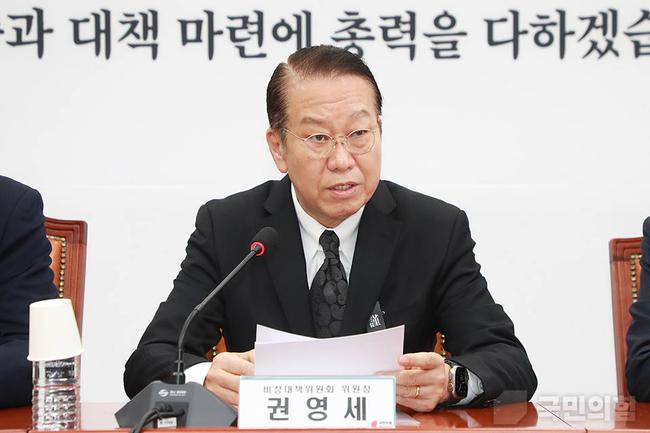 국민의힘 권영세 비상대책위원장은 2일 열린 비상대책위원회의에서 국정 혼란과 경제 위기에 대한 책임감을 강조하며, 국정 안정과 민생 회복을 최우선 과제로 삼겠다고 밝혔다.
