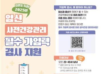 `임신 사전건강관리 지원사업`은 2024년 4월부터 시행 중으로 임신과 출산에 장애가 될 수 있는 건강 위험 요인을 미리 발견해 치료 또는 관리할 수 있도록 필수 가임력 검사비를 지원하는 사업이다.