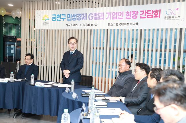 금천구(구청장 유성훈)는 지난 1월 17일 16시, G밸리에 위치한 (주)한국제프란 회의실에서 `금천구 민생경제 G밸리 기업인 현장 간담회`를 개최했다고 밝혔다.