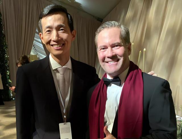 한화그룹 김동관 부회장이 미국 워싱턴DC에서 열린 트럼프 대통령 취임식 및 만찬 무도회에 참석하고 미국 신 정부 주요 인사들을 만나 소통하며 글로벌 네트워크를 다졌다(왼쪽부터 한화그룹 김동관 부회장, 마이크 왈츠 국가안보보좌관)