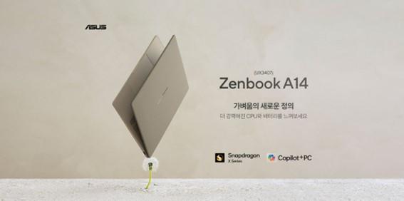 글로벌 컨슈머 노트북 및 게이밍 노트북 시장 리딩 브랜드인 에이수스(ASUS, www.asus.com/kr)가 퀄컴 테크날러지스(Qualcomm Technologies Inc.)의 스냅드래곤 X 시리즈 프로세서(Snapdragon® X Series processors)를 탑재한 899g의 초경량 14인치 코파일럿+ PC ‘젠북 A14’를 출시한다.