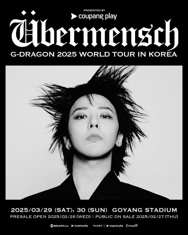 이번 공연은 `쿠팡플레이와 함께하는 지드래곤 2025 월드투어 `위버맨쉬` 인 코리아`라는 타이틀로 진행되며, 쿠팡플레이는 한국 콘서트의 프레젠팅 파트너로서 지드래곤만의 독창적인 음악세계와 퍼포먼스를 선보일 예정이다.