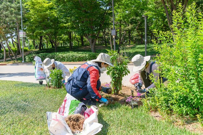 양천구 정원 자원봉사자 `정원친구`들이 가드닝활동을 하는 모습