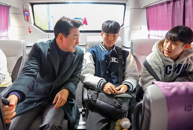김동근 시장은 3월 20일 아침 노선 개편 후 이용자가 2배 증가한 `의정부 학생 통학버스`에 탑승해 학생들과 소통하며 현장의 목소리를 들었다.