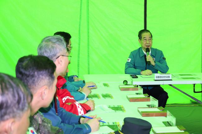 한 권한대행은 “강풍과 연기 속에서 화마와 싸우고 있는 산불 특수진화대, 소방관, 군·경, 지자체 공무원, 자원봉사자 모두의 헌신에 감사드린다”며 “요양병원, 장애인 시설 등 취약계층 거주지를 사전에 대피시키는 조치는 매우 중요한 대응이며, 특히 진화 과정에서 추가적인 인명피해가 없도록 안전 조치에 만전을 기해달라”고 강조했다.