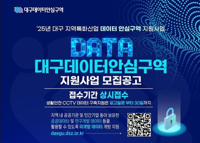 대구광역시는 5월 8일(목) 과학기술정보통신부(이하 `과기정통부`)로부터 `데이터산업진흥 및 이용촉진에 관한 기본법(이하 `데이터산업법`)` 제11조 및 `데이터안심구역 지정 및 운영에 관한 지침`에 따른 지정 기준을 충족해, 영남권 최초의 `데이터안심구역 지역거점`으로 최종 지정됐다.