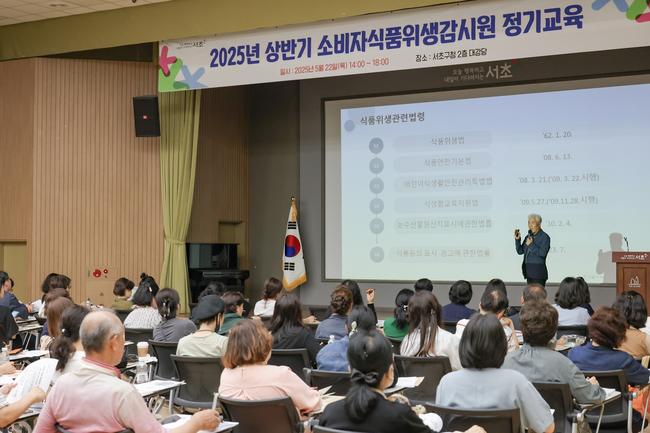 서울 서초구(구청장 전성수)가 22일(목) 오후 2시 구청 2층 대강당에서 서초구 소비자식품위생감시원 107명을 대상으로 `2025년 상반기 소비자식품위생감시원` 정기교육을 실시했다고 밝혔다.