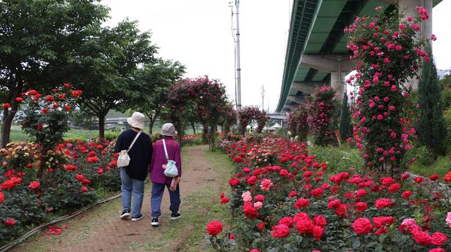 도심 속 장미정원으로 재탄생한 안양천...금천구, 2㎞ 수변 꽃길 조성
