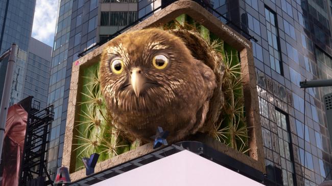 LG전자는 미국 뉴욕 타임스스퀘어 전광판에서 `피그미 올빼미`를 주제로 한 7번째 `LG와 함께하는 위기 동물 보호 캠페인` 영상을 공개했다