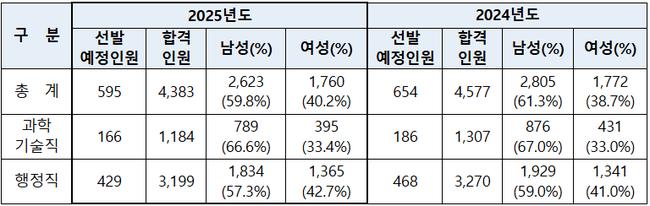 2025년도 국가공무원 7급 공개경쟁채용 1차시험 합격자가 4,383명으로 확정됐다.
