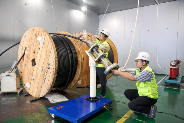 LS전선 연구원들이 MV 내화 케이블의 성능을 테스트하고 있다