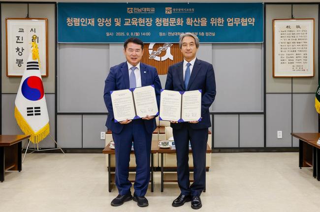 이정선 교육감은 "청렴은 교육의 기본이자 학생들에게 가장 중요한 가치"라며 "전남대와 함께 청렴 인재를 길러내고 교육 현장에 청렴 문화를 뿌리내리도록 최선을 다하겠다"고 말했다.