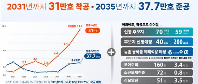서울시는 이번 대책으로 2031년까지 31만 호 착공, 2035년까지 37만7천 호 준공을 목표로 한다. 특히 한강벨트 등 수요가 집중된 지역에 19만8천 호를 공급해 전체의 63.8%를 차지하도록 집중 배치, 주택시장 안정에 기여하겠다는 계획이다.
