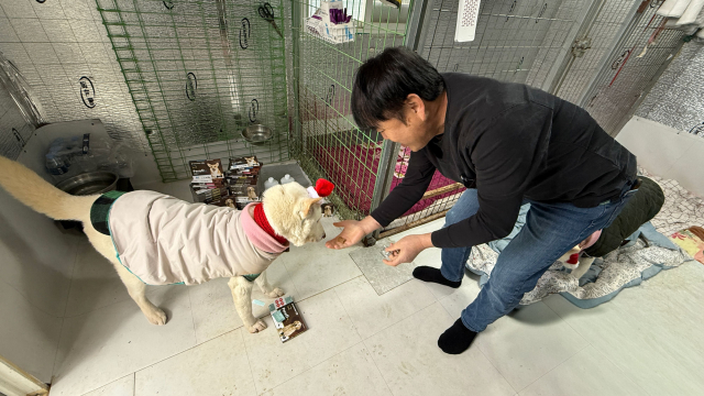 크리스마스를 앞두고 보호소에서 지내는 유기견들에게도 따뜻한 선물이 전해졌다.