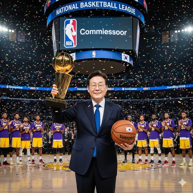 이재명 대통령은 취임 후에 특정 구단의 구단주가 아닌 리그 전체의 흥행과 성공을 책임진 인물의 모습을 보여주고 있다. 이미지는 대통령이 미국 NBA의 총재로 취임하는 장면을 ChatGpt를 활용해 필자가 만든 것임.우리나라 정치인들 가운데는 구단주 출신이 여럿이다. 한국 프로축구 리그 K 리그(LEAGUE)의 참가팀들 중 상당수가 지방자치단체장이 구단주로 자리한 시민구단 형태로 운영돼왔기 때문이다. 이를테면 이재명 대통령은 민선 성남시장으로 재임하던 기간에 성남FC의 구단주 역할을 맡은 바 있다. 창단 후 처음으로 K 리그1으로 승격한 부천FC 1995는 조용익 현 부천시장이 축구팀의 살림을 전반적으로 총괄하는 구단주로 활동해왔다.