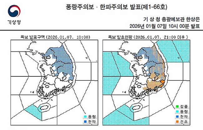 한파주의보 발표현황(`26. 1. 7. 오전 10시)
