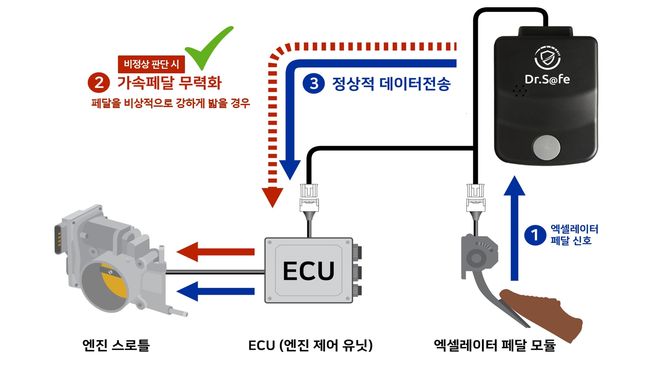 이번 사업은 운전자의 실수로 가속 페달을 비정상적으로 강하게 밟는 상황에서 가속을 억제해 사고를 막는 기술 기반 예방 대책이다. 정차 또는 시속 15km 이하 주행 중 가속 페달을 80% 이상 밟거나, 주행 중 엔진 회전수가 4,500RPM에 도달하는 급가속 상황을 감지해 가속을 무력화하는 방식이다.
