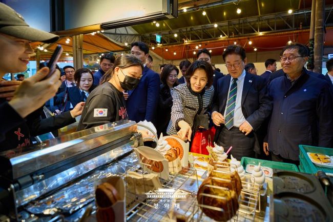 제주시 도심에 위치한 동문시장은 제주를 대표하는 전통시장으로, 대통령 부부의 방문 소식이 전해지자 현장은 즉각적인 반응을 보였다. 상인들과 방문객들은 환호와 박수로 이들을 맞이했으며, 시장 입구에서 만난 한 외국인 관광객은 이 대통령의 질문에 “오스트레일리아”라고 답하며 눈길을 끌었다.